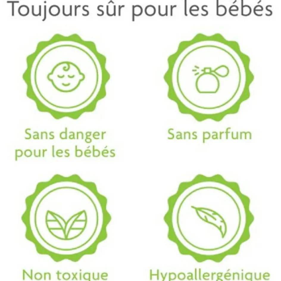 – Sans danger pour les bébés, non toxique, hypoallergénique et sans parfum.