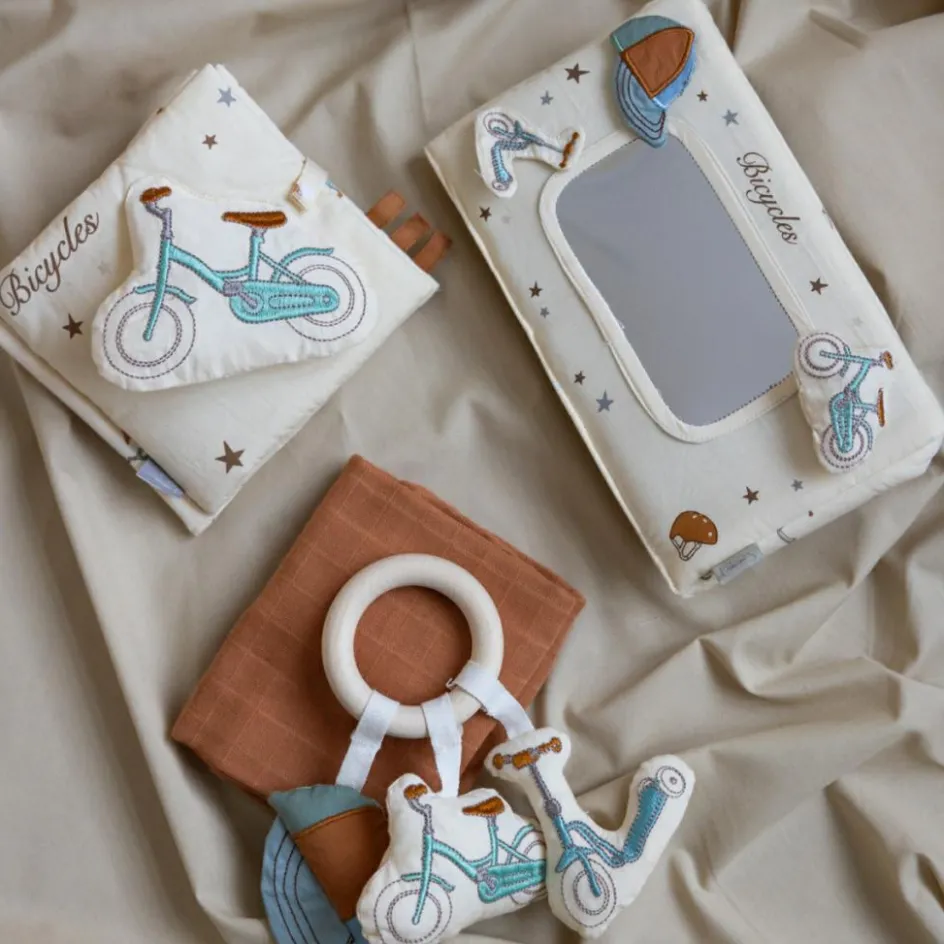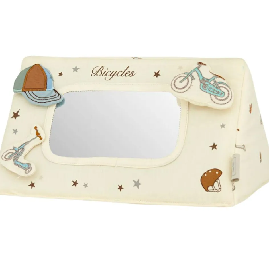– Le miroir position ventrale est doté d’intéressantes textures plissées ainsi que d’un accessoire couineur qui permettent de stimuler les facultés motrices fines du bébé en âge de se déplacer et de toucher le miroir.