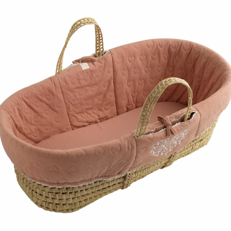 Coffret de tendresse pour les premières nuits de bébé : découvrez le Couffin en osier Petit Cœur de Sauthon, un cocon naturel et plein d’amour.
