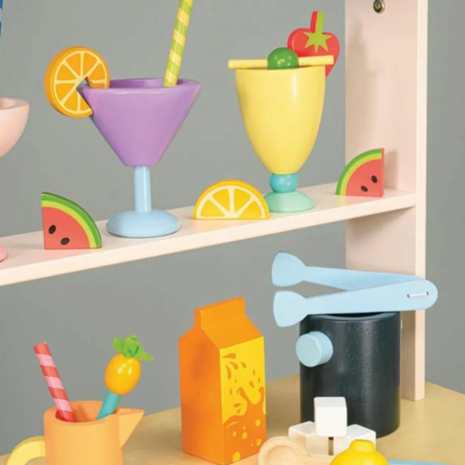 Faites pétiller l’imagination de votre enfant avec le Chariot à boissons Tender Leaf, un bar miniature coloré et lumineux qui transforme chaque jeu en véritable fête !