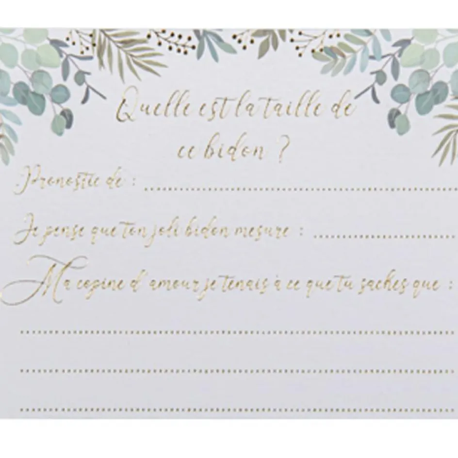 – 10 cartes à compléter pour écrire les pronostics sur le diamètre du ventre de la future maman et ajouter un mot doux.