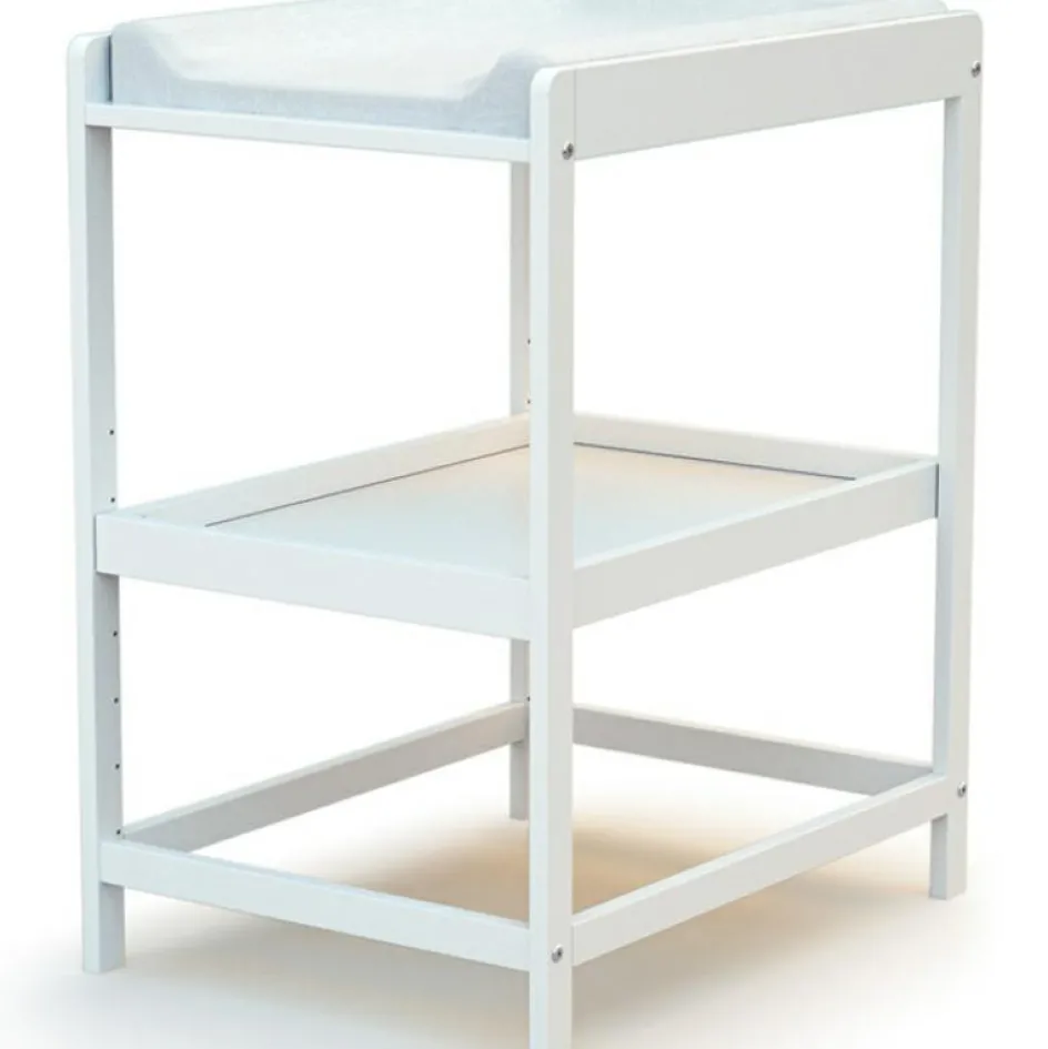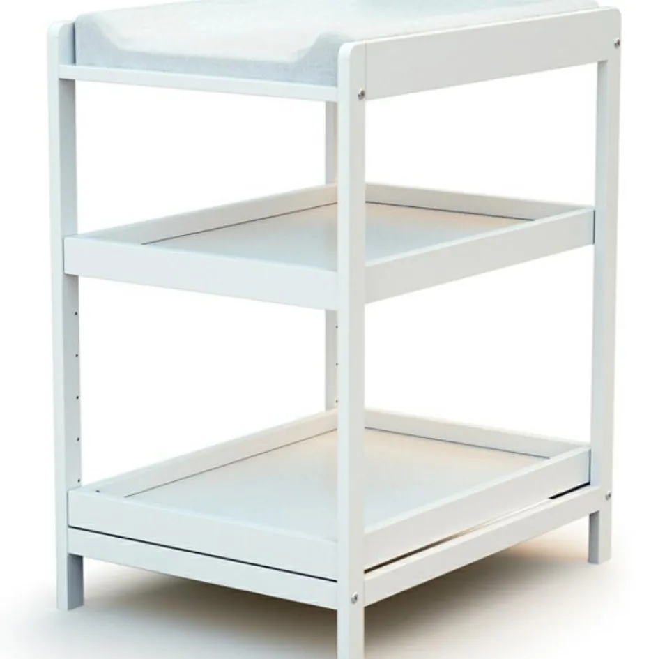 – Plan à langer et étagère en panneaux de fibre à haute densité.