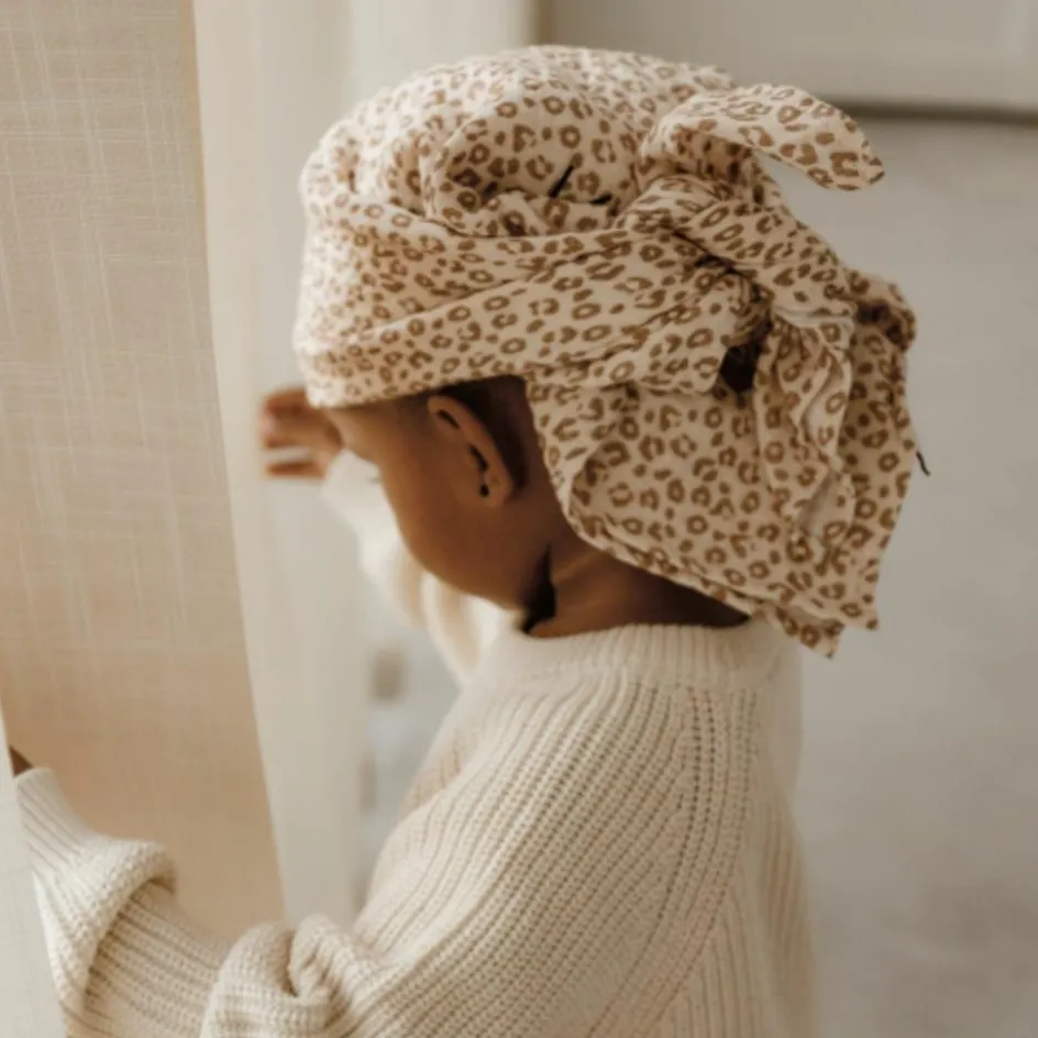 Polyvalent, doux et stylé, le Lange en gaze Léopard Atelier Wagram accompagne votre enfant au quotidien avec une touche sauvage et tendance.