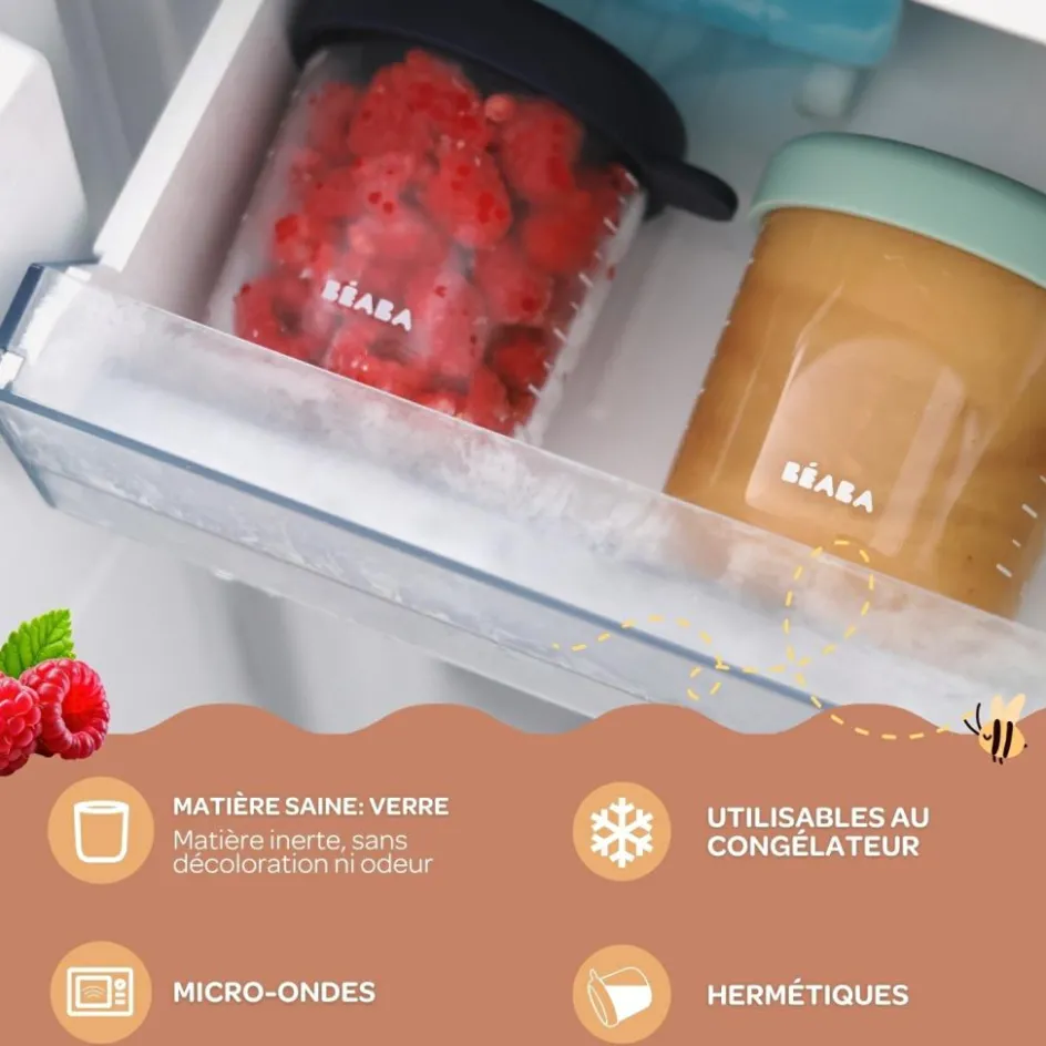 Les portions verre Béaba de 150 ml sont idéales pour conserver, réchauffer et congeler les repas de vos tout-petits. Fabriqués en verre extra-résistant, ces récipients ne s’altèrent pas avec le temps, garantissant une durabilité sans coloration ni déformation. Le verre est une matière saine, inerte, sans produits chimiques, qui ne retient ni goûts ni odeurs, idéal pour préserver la pureté et la saveur des repas. Utilisables au micro-ondes et au congélateur, ils résistent parfaitement à la chaleur et au froid, y compris la stérilisation. Chaque portion est équipée d’un couvercle souple facile à clipper, offrant une fermeture hermétique qui préserve les saveurs et les arômes des aliments. La graduation visible en ml/oz permet un dosage précis et facile. Empilables, ces portions optimisent l’espace de rangement. Faciles à entretenir, elles se lavent à la main ou au lave-vaisselle, assurant une utilisation pratique au quotidien. Parfaites pour toutes les situations, ces portions sont le choix idéal pour une alimentation saine et pratique.