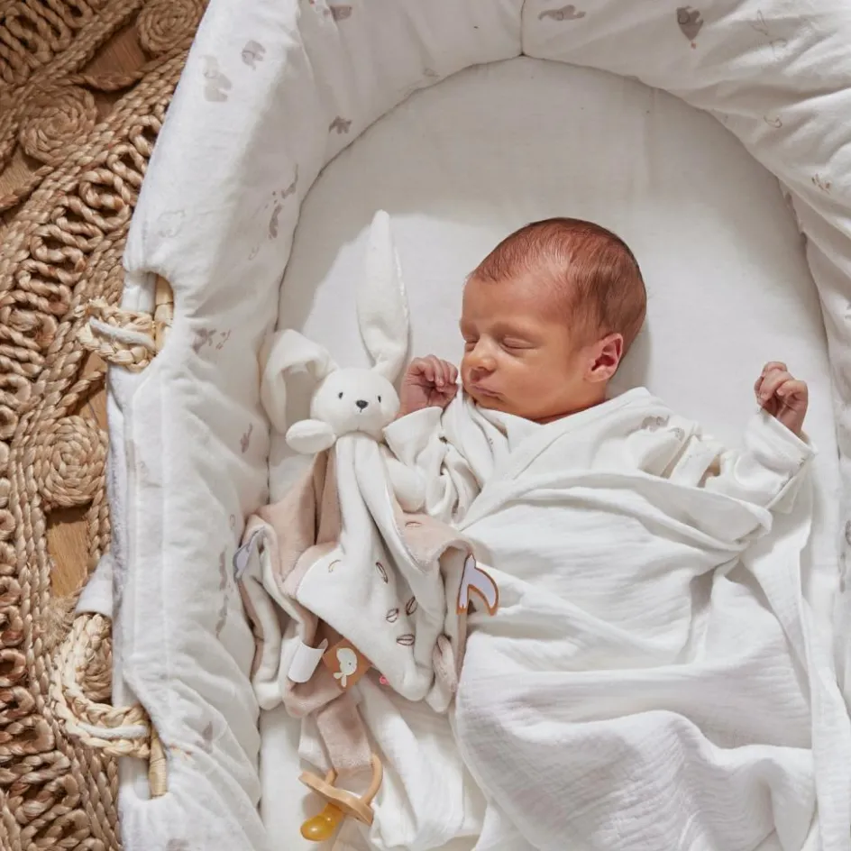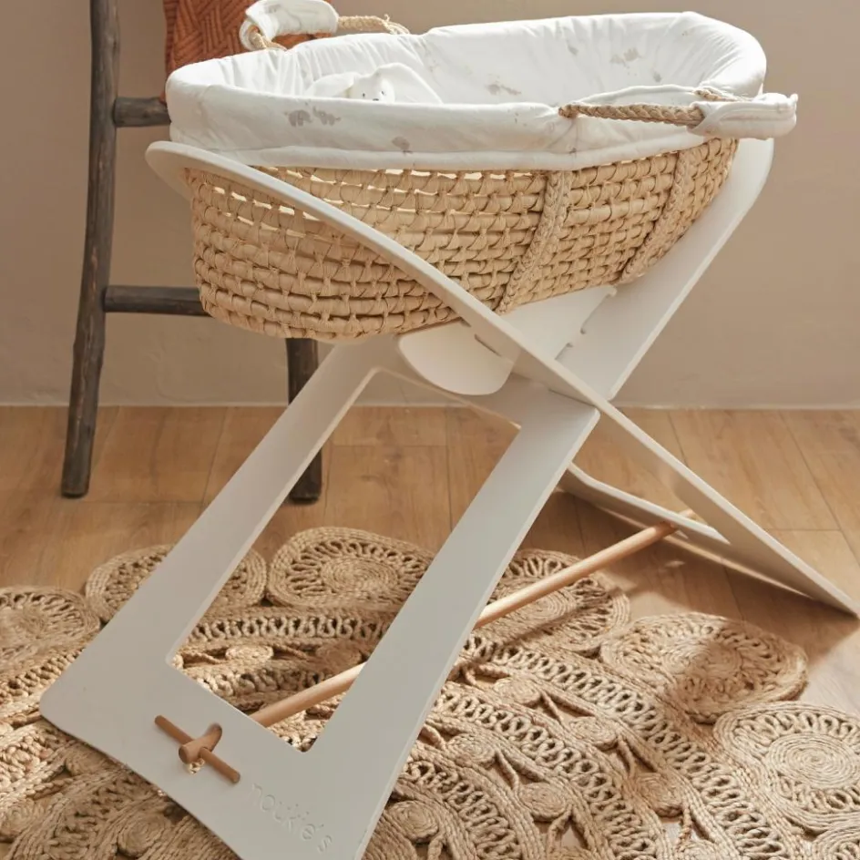 – Le couffin Noukie’s, avec son imprimé douxen Veloudouxécru de Bali et Moka, offre un environnement sécurisé et confortable pour le sommeil de bébé.