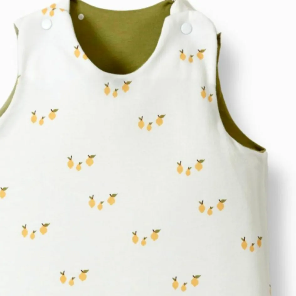 Offrez à votre bébé des nuits douces et sécurisées en toute saison avec la gigoteuse réversible 4 saisons motif citrons (0-6 mois).