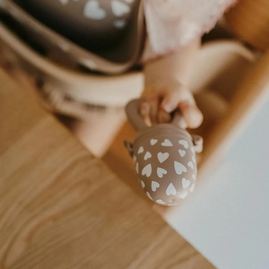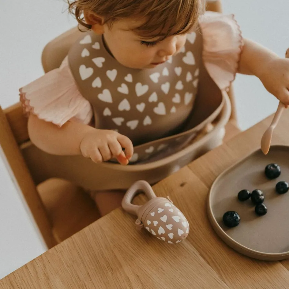 Pensée pour éveiller la curiosité gustative des tout-petits, cette tétine grignoteuse au motif de petits cœurs séduira autant les parents que les bébés. Déclinée en deux coloris tendres – camel et taupe – elle allie design, sécurité et praticité pour accompagner bébé dans ses premiers essais alimentaires en toute confiance.