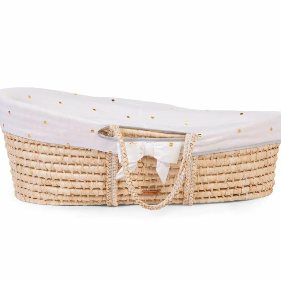 L’ habillage pour couffin pois doré de la marque Childhome habillera le couffin en osier naturel de la marque. Ainsi, votre bébé peut se coucher confortablement et dormir confortablement.