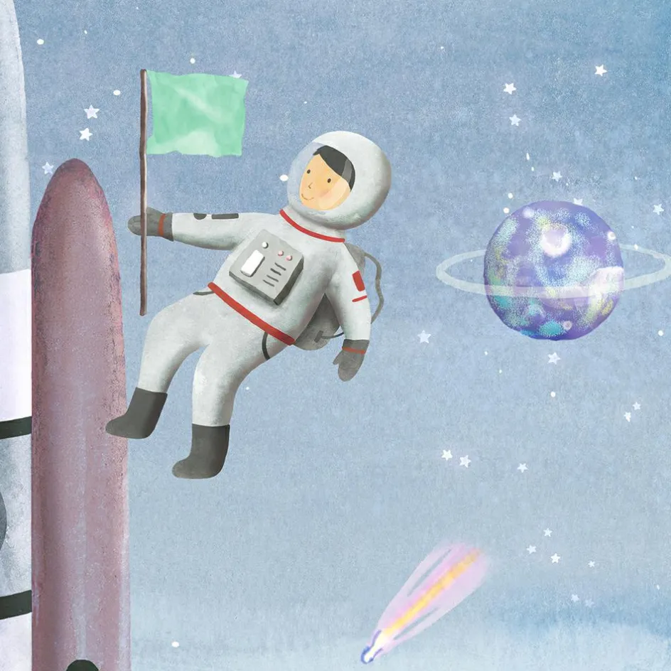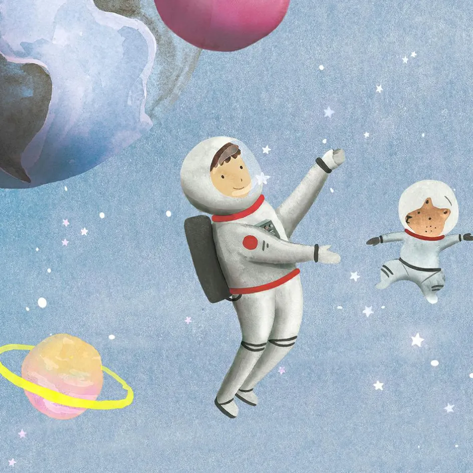 – On s’envole vers l’infini et au-delà avec ce papier peint qui va transformer la chambre en galaxie.
