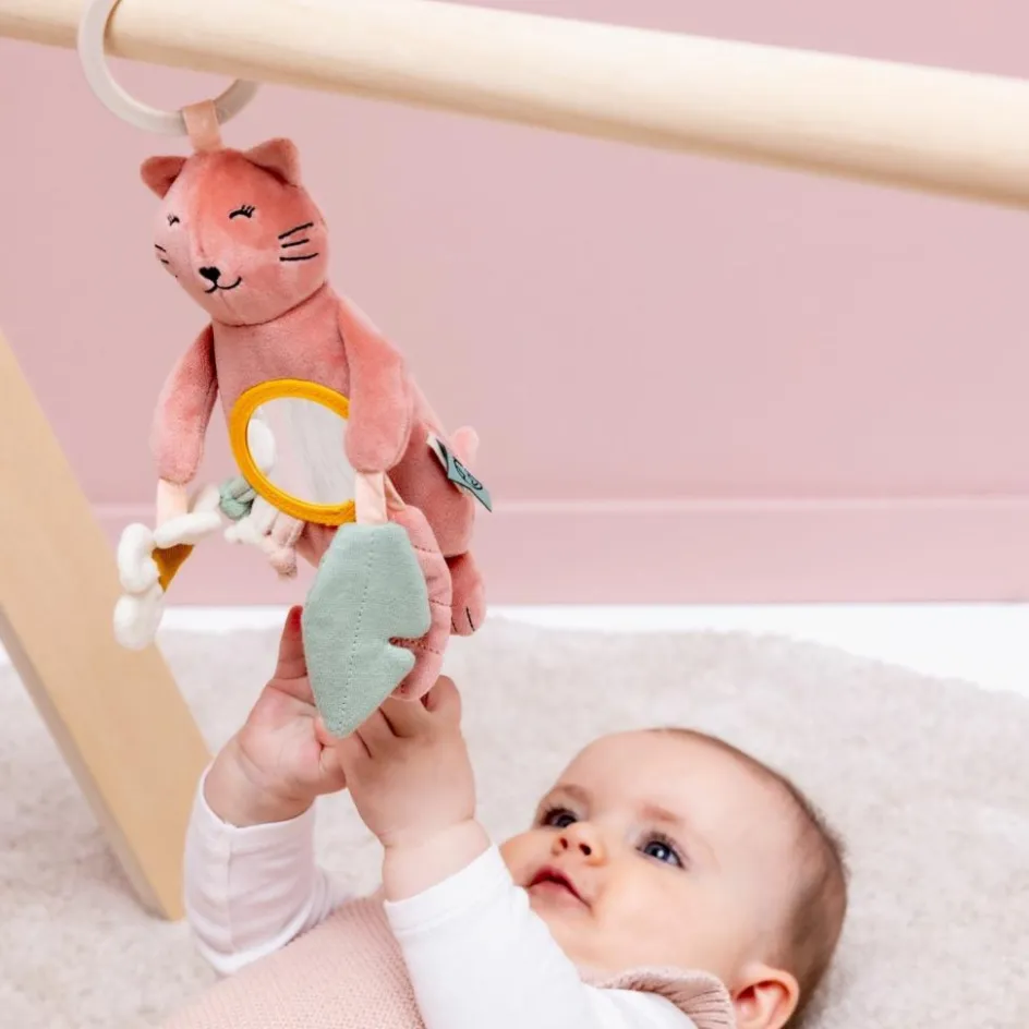 Offrez à bébé un monde de découvertes sensorielles avec le Jouet d’activités à suspendre Mrs. Cat de Trixie.