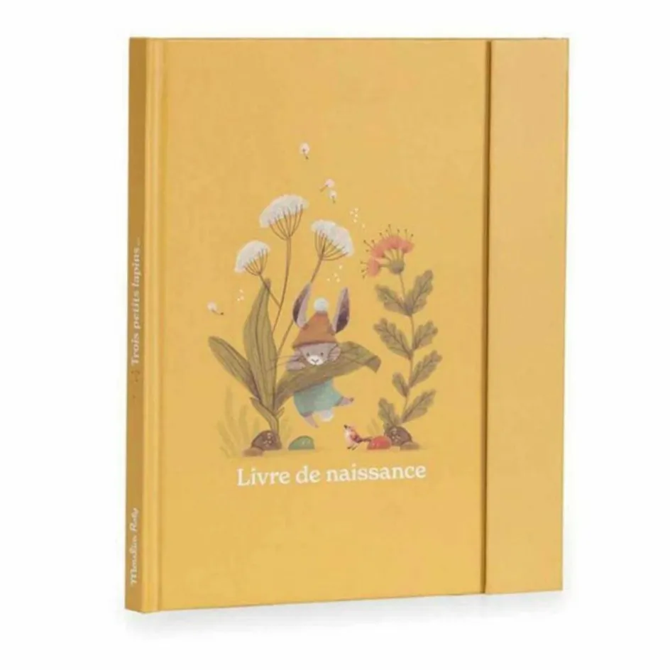 Immortalisez les premiers souvenirs de votre enfant avec le livre de naissance Trois petits lapins de Moulin Roty.
