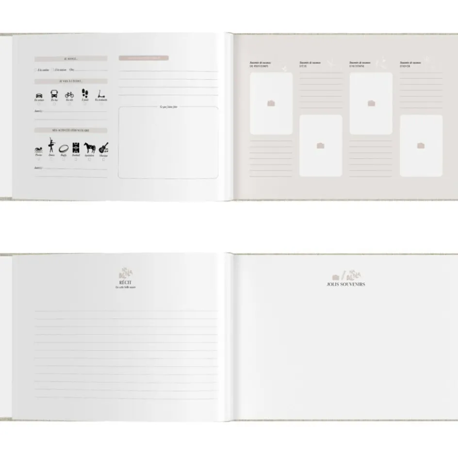Ce magnifique album en lin est conçu pour conserver précieusement les plus beaux souvenirs de l’école. Photos de classe, liste des camarades, activités périscolaires, anecdotes et dessins… Chaque page invite à revivre les moments marquants de la scolarité de votre enfant.