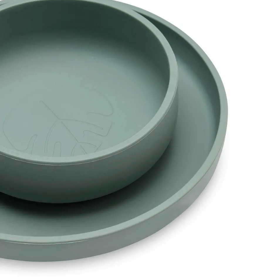 Profitez de moments complices avec votre enfant grâce au coffret repas en silicone Ash green de Jollein.