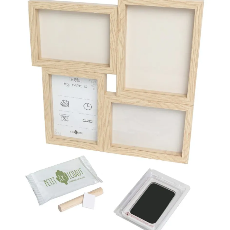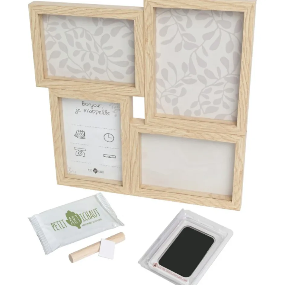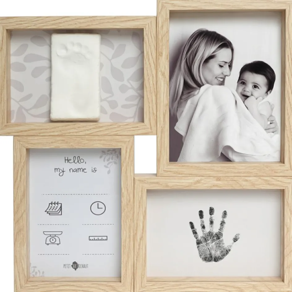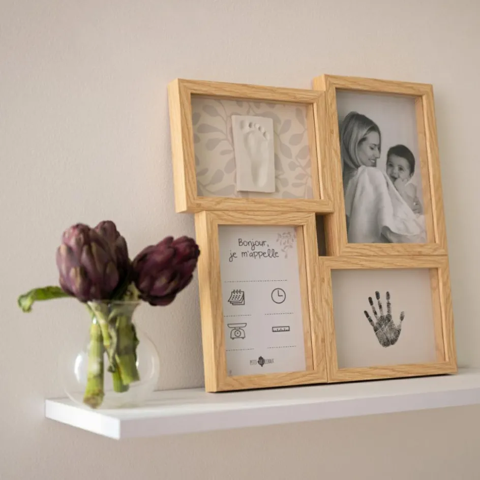 – Le Pêle-Mêle – Ivy Grey est une composition de plusieurs cadres pour afficher photo et empreintes de bébé avec de l’alginate et de l’encre.