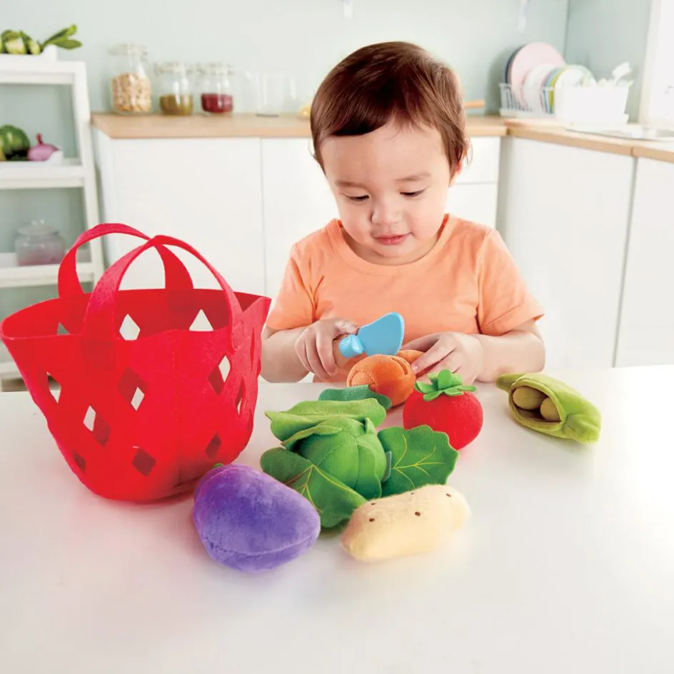 Le panier de légumes de la marque Hape est parfait pour jouer à la marchande. Votre enfant rempli ce doux panier en feutre avec ses légumes préférés. Il épluchera les haricots, enlèvera les feuilles de chou et coupera la carotte et l’aubergine en deux ! Fourni avec un couteau doté d’un manche rond en bois permettant aux bébés de l’attraper et de le tenir.