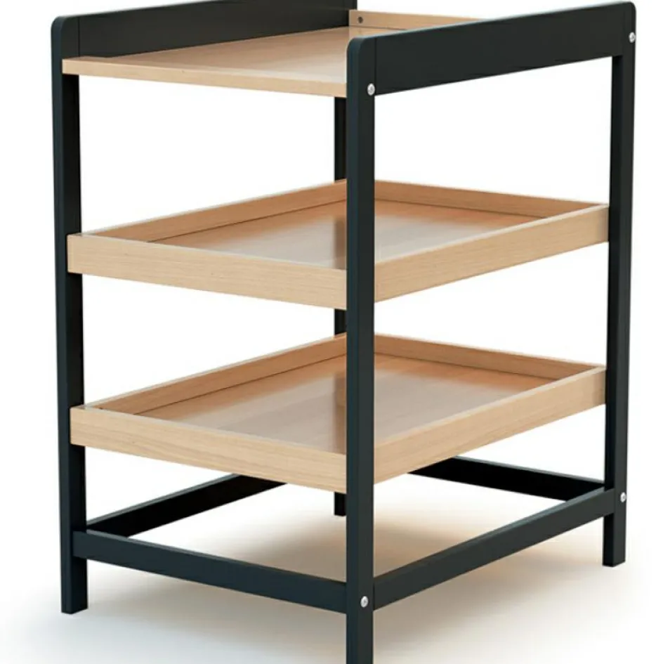– Plan à langer et étagère en panneaux de fibres à haute densité.