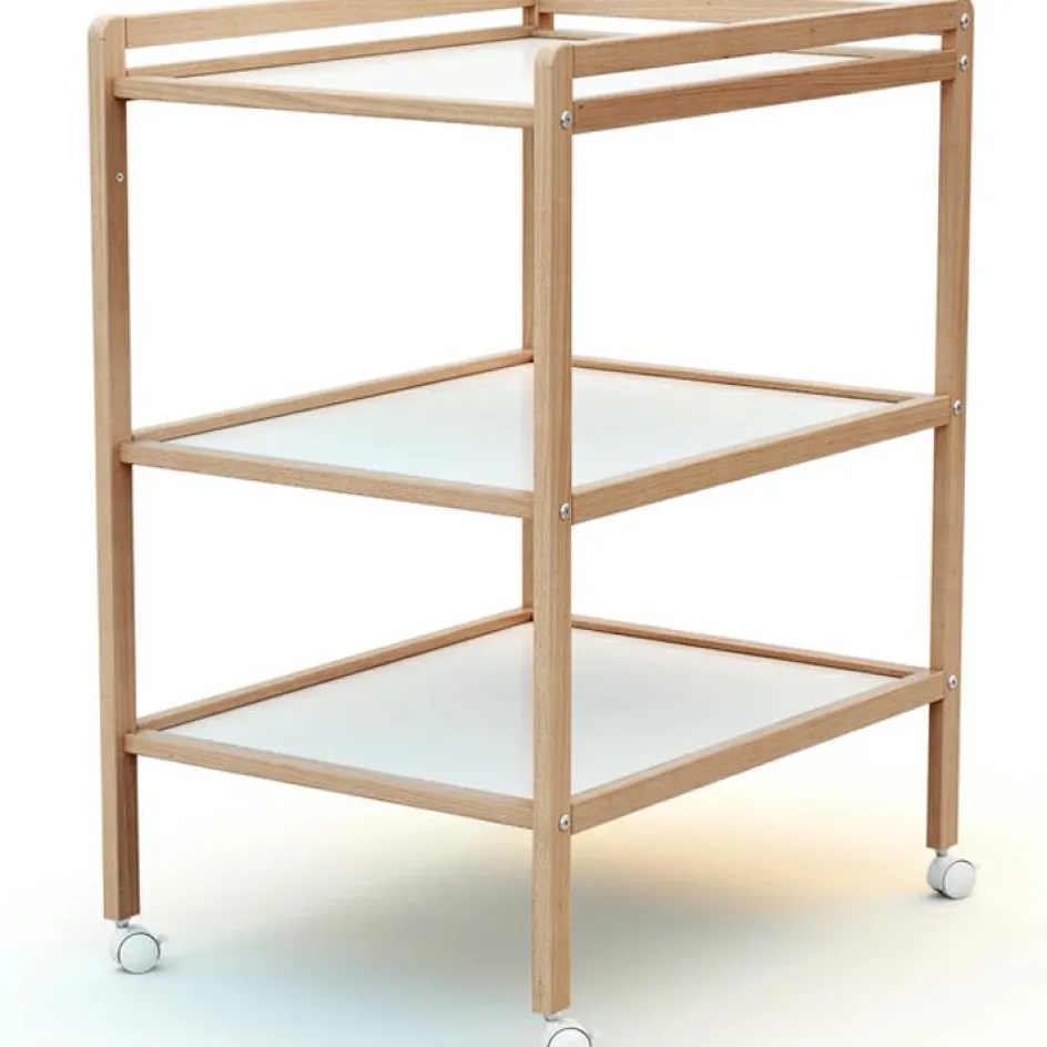La table à langer en bois de hêtre verni Essentiel de la marque AT4 permet de changer bébé confortablement. Elle dispose de deux étagères pour ranger les produits et les avoir à portée de main lors de la toilette de votre bout ‘chou.