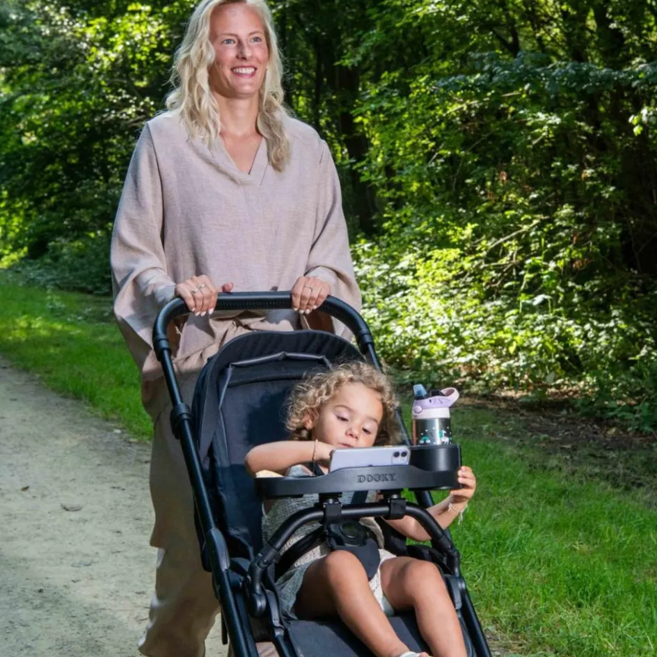On le sait tous : vous êtes en balade avec votre petit bout, le soleil brille, et, tenant la poussette d’une main, vous essayez d’ouvrir un sachet de goûters de l’autre sans que tout ne tombe au sol au ralenti. Avec le plateau à goûter Dooky pour poussette, vos promenades se dérouleront sans encombre. Ce plateau multifonction s’adapte à toutes les poussettes et offre de la place pour des goûters, une tasse, votre téléphone et même un espace de jeu.