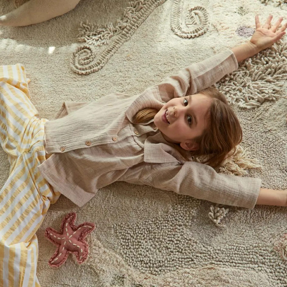 – Tons naturels et pastel, le fond de l’océan est représenté par des zones de textures différentes qui éveilleront l’imagination de vos enfants.