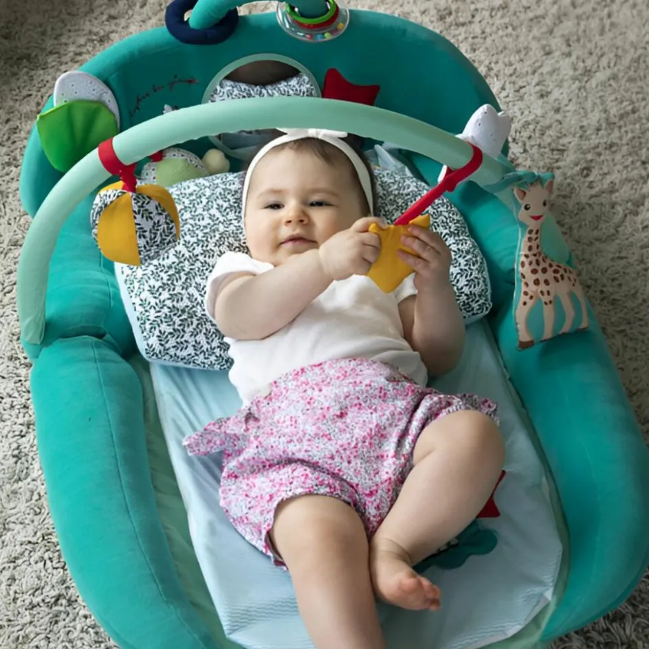 Le tapis d’éveil évolutif Evolu’Doux de Sophie la girafe est bien plus qu’un simple tapis de jeu.