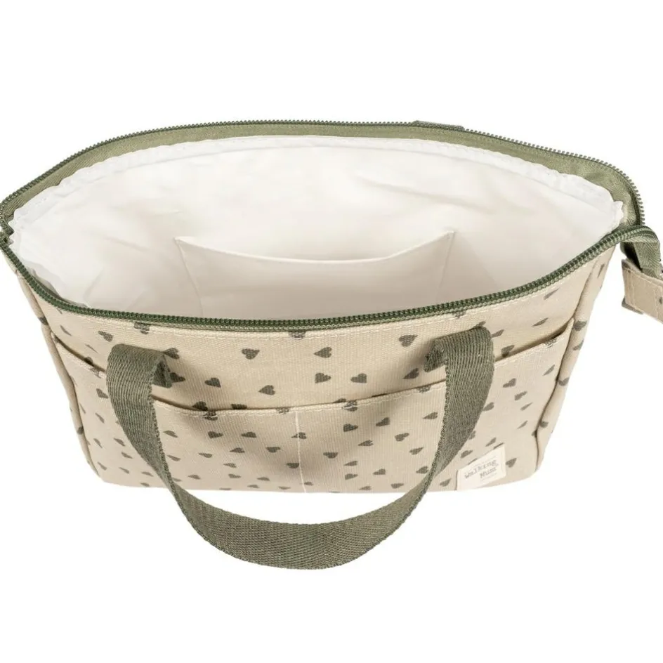 – La trousse de toilette bébé Poppy avec coeurs Vert Mousse est une trousse spécialement conçue pour transporter tous nos articles de toilette fille ou garçon lors de vos sorties.